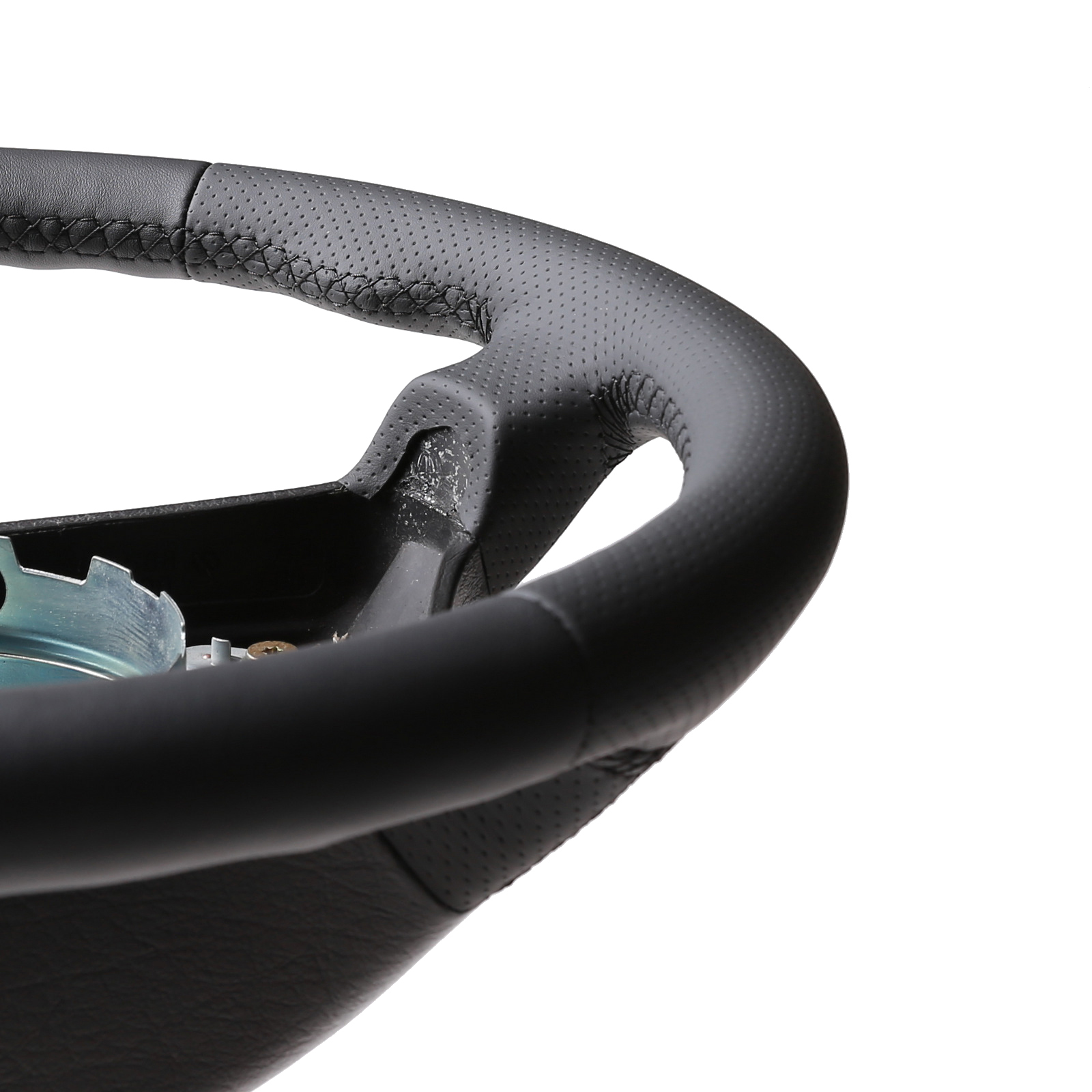 Wir verarbeiten ausschließlich Original Automobilleder, die Farbe nennt sich Soul und sieht eher Anthrazit aus als schwarz. Die moderne Autolederindustrie verwendet bei Porsche, Mercedes, BMW usw. keine tiefschwarzen Töne mehr wie früher. Das Leder wird heutzutage durch eine dünne Polyurethan Schicht (die besonders resistent gegen Handschweiß ist) und mattere Farben speziell geschützt. Auch eine Perforation am Leder (die bei uns im Hause durchgeführt wird) verändert nicht die Pflegeleichtigkeit.
