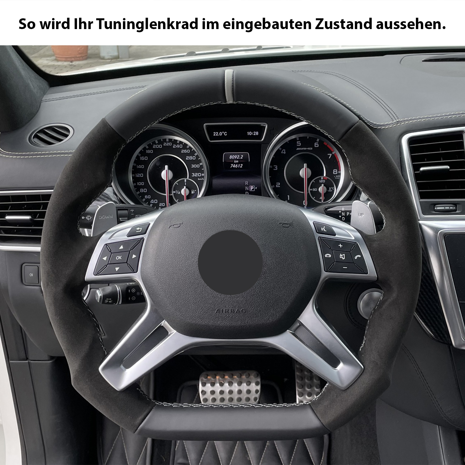 Produktinformationen "Mercedes Lenkrad W204 C Klasse W166 ML X166 W212 W463 Abgeflacht Alcantara 12 Uhr Markierung silber"