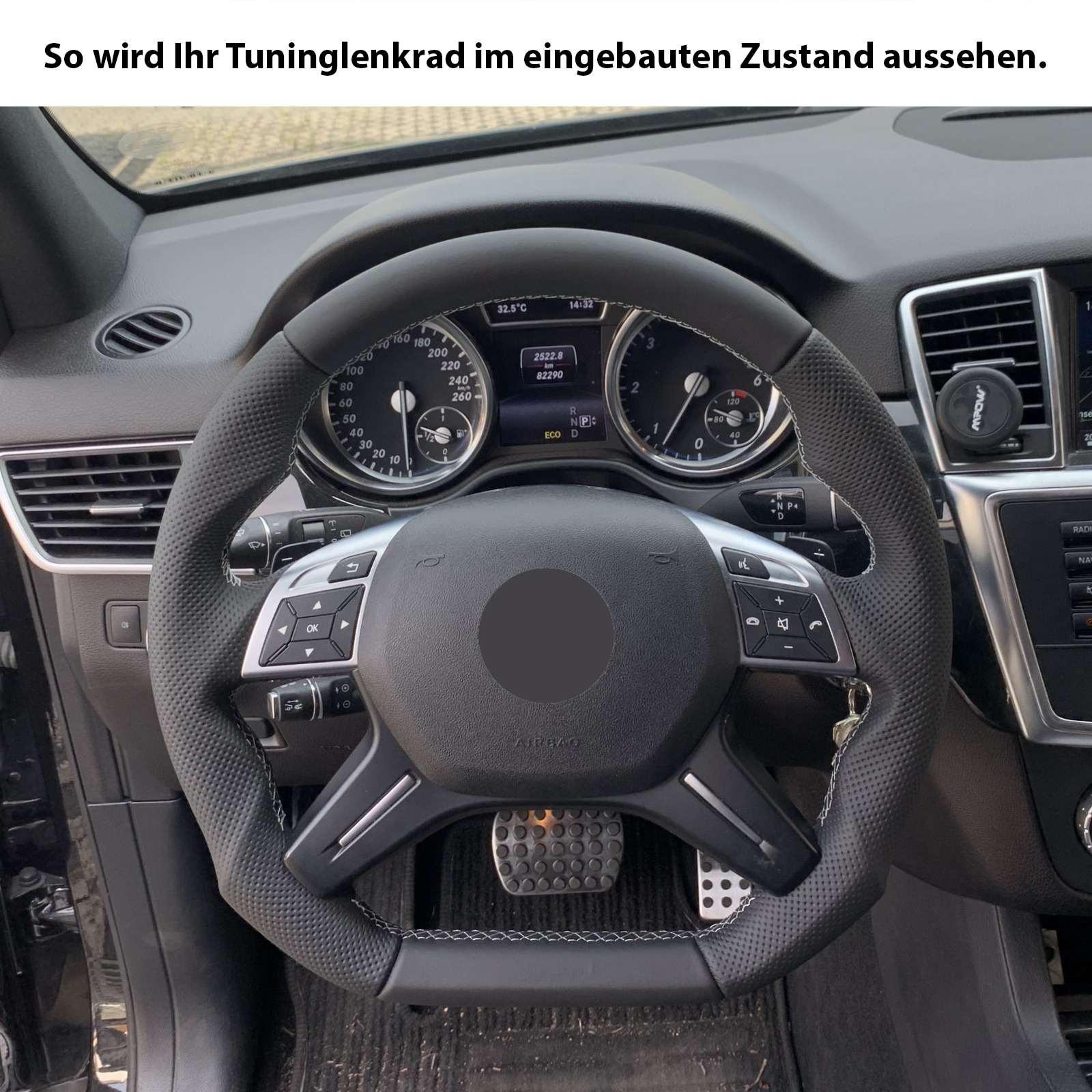 Mercedes Lenkrad W204 C Klasse W166 ML X166 W212 W463 Abgeflacht Kombibezug Naht silber