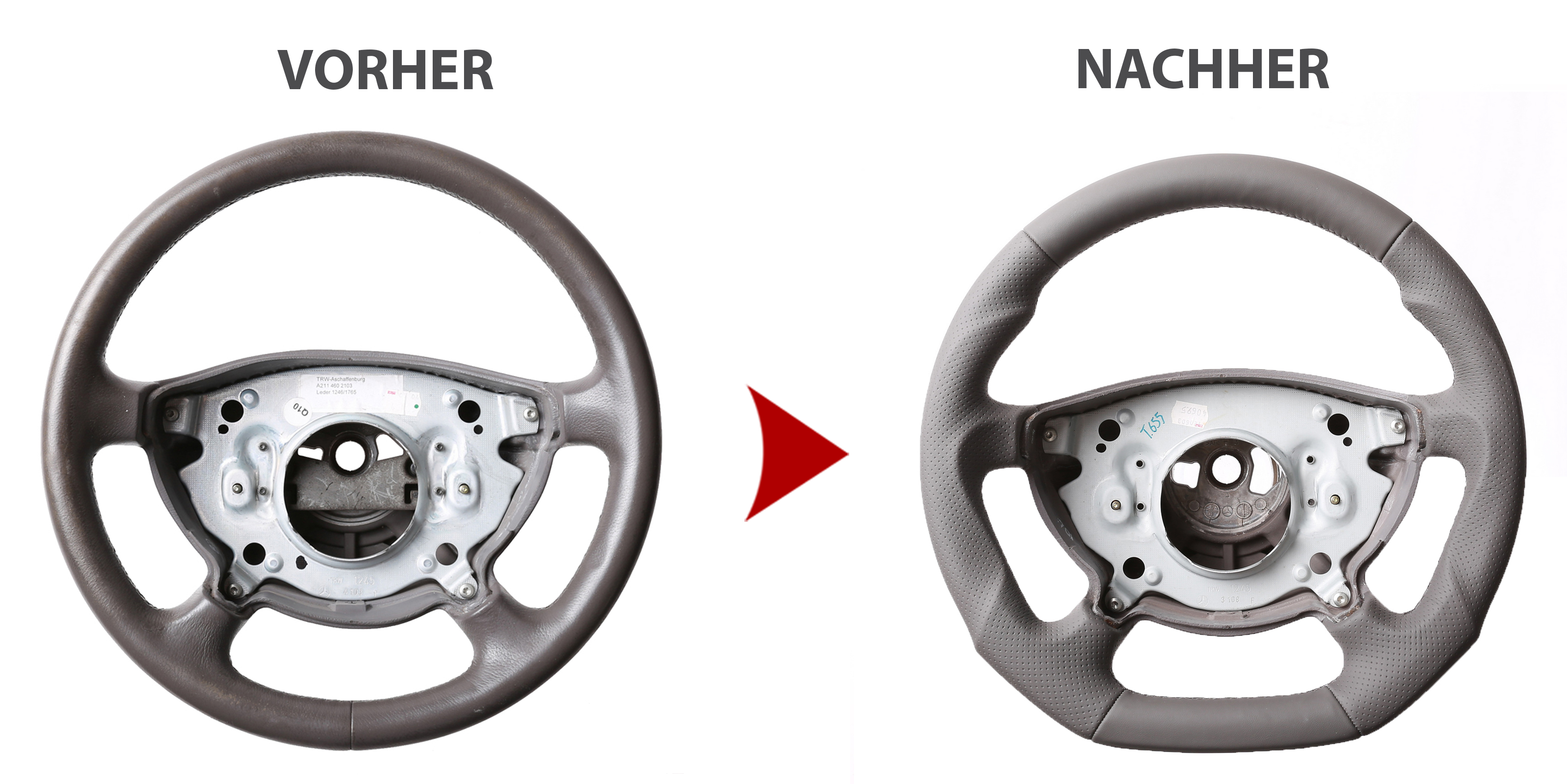 Des Weiteren bieten wir auch den Neubezug Ihres Lenkrades nach Ihren individuellen Vorstellungen bei uns vor Ort an. Sollte es Ihr Lenkradmodell ausnahmsweise nicht in unserem Sortiment geben, dann können wir Ihnen Ihr Lenkrad ausbauen, innerhalb von 4-5 Stunden den Wunschbezug anfertigen und anschließend können Sie wieder nach fachgerechtem Einbau durch uns ohne lange Versandwartezeiten und teure Werkstattbesuche mit Ihrem neu bezogenen Lederlenkrad nach Hause fahren!