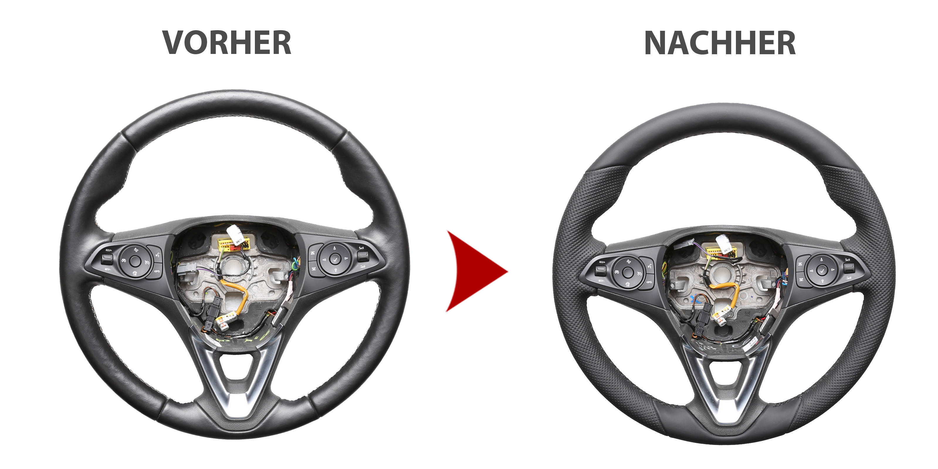 Der Austausch erfolgt ausschließlich gegen ein baugleiches Lenkradmodell. Alle Anbauteile wie Airbag, Multifunktionstasten, Blenden, Schaltwippen oder gar ein Spurhalteassistent übernehmen Sie problemlos von Ihrem Lenkrad. Diese sind nicht im Lieferumfang enthalten.