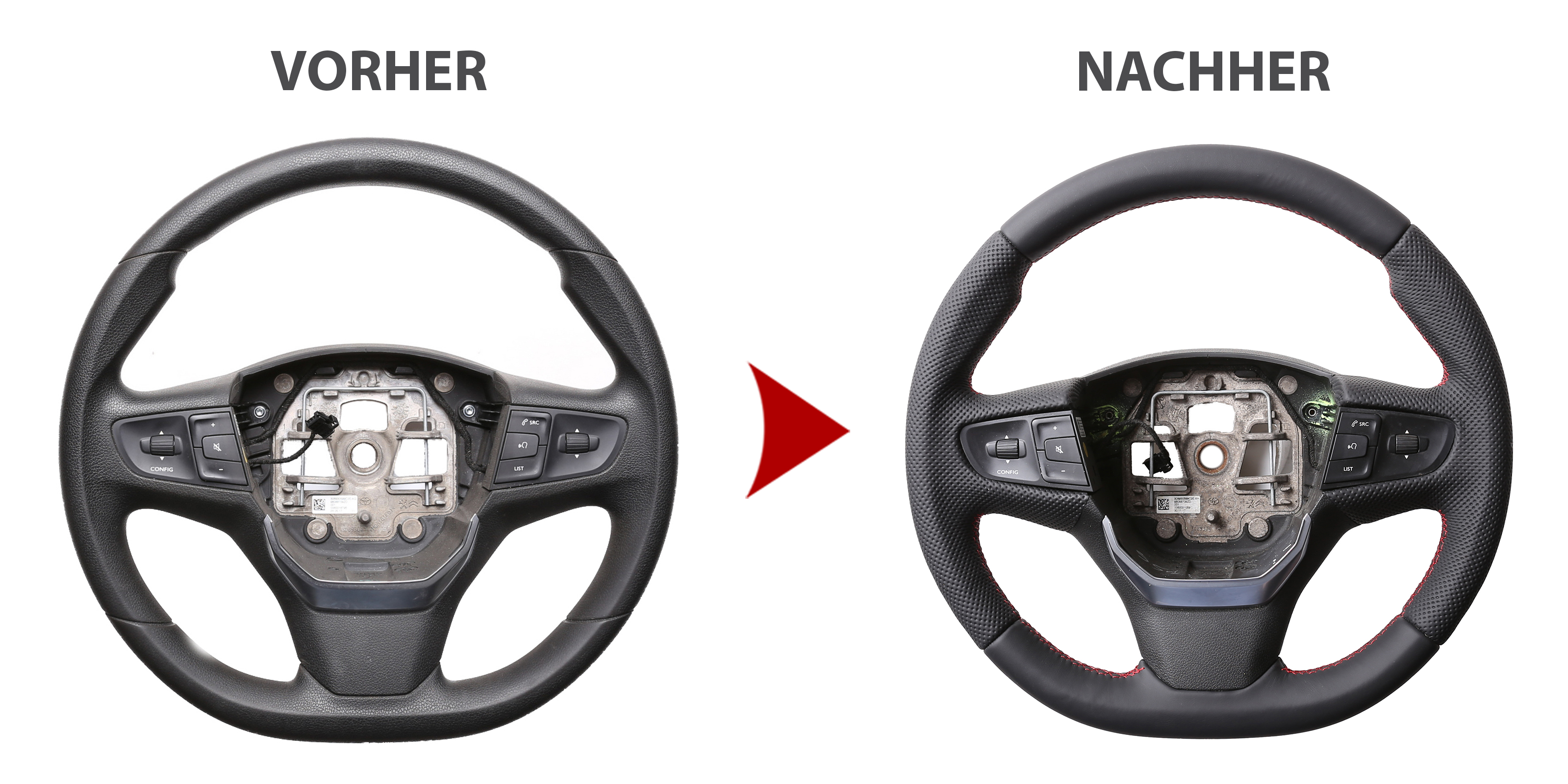 Produktinformationen "Peugeot Lenkrad Expert Traveller Toyota ProAce Verso Citroen Jumpy III Kombibezug Naht rot"