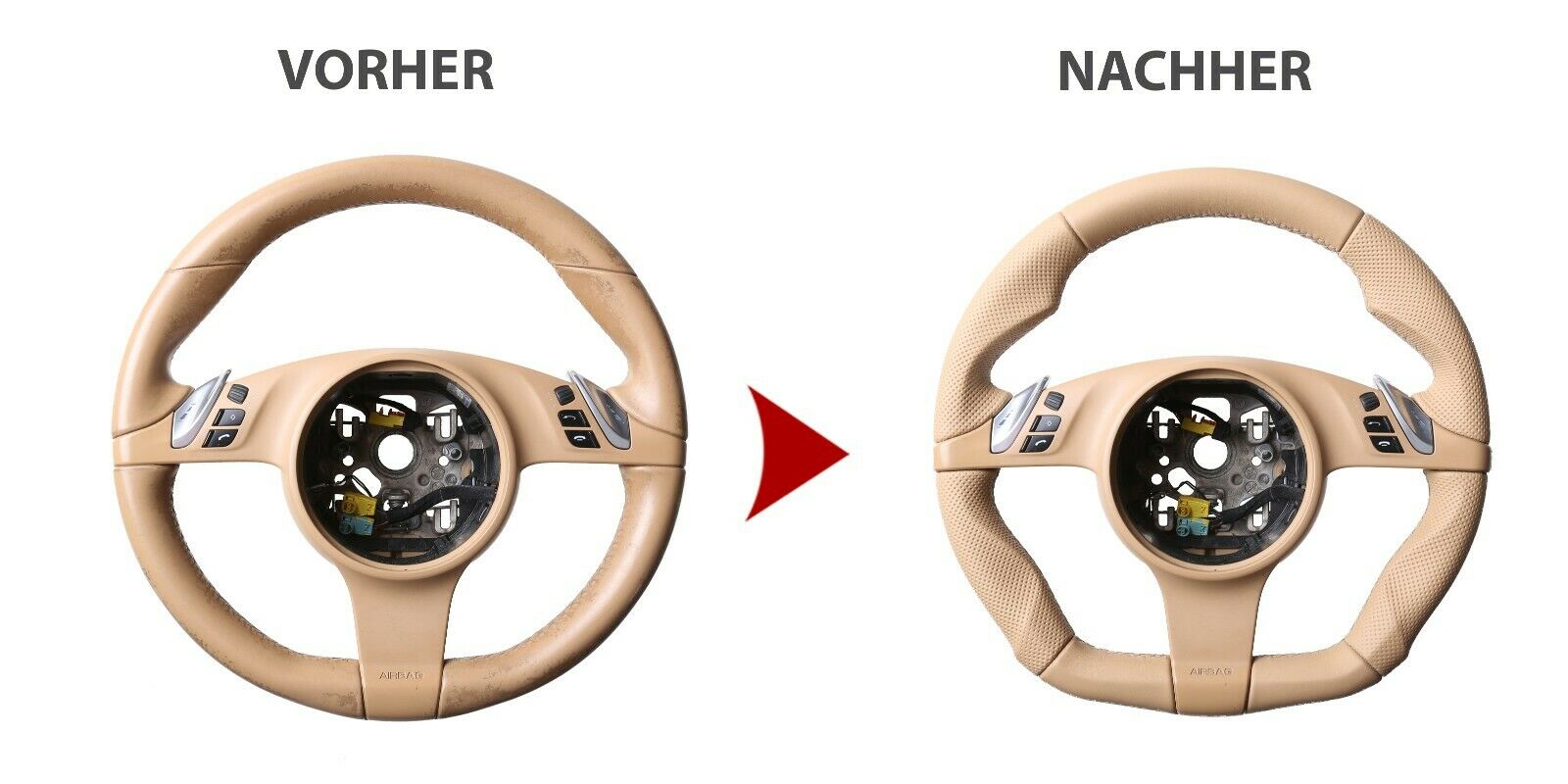 Produktinformationen "Porsche Lenkrad 911 958 970 987 997 Boxster Carrera Abgeflacht Kombibezug sandbeige Naht beige"
