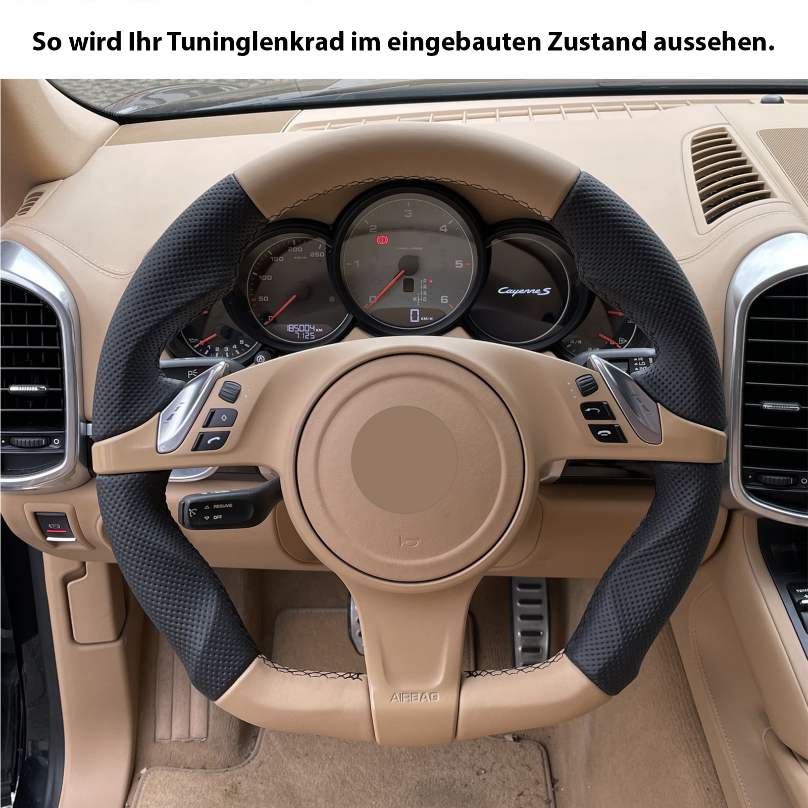 Porsche Lenkrad 911 958 970 987 997 Cayenne Boxster Carrera Abgeflacht Bicolorbezug sandbeige
