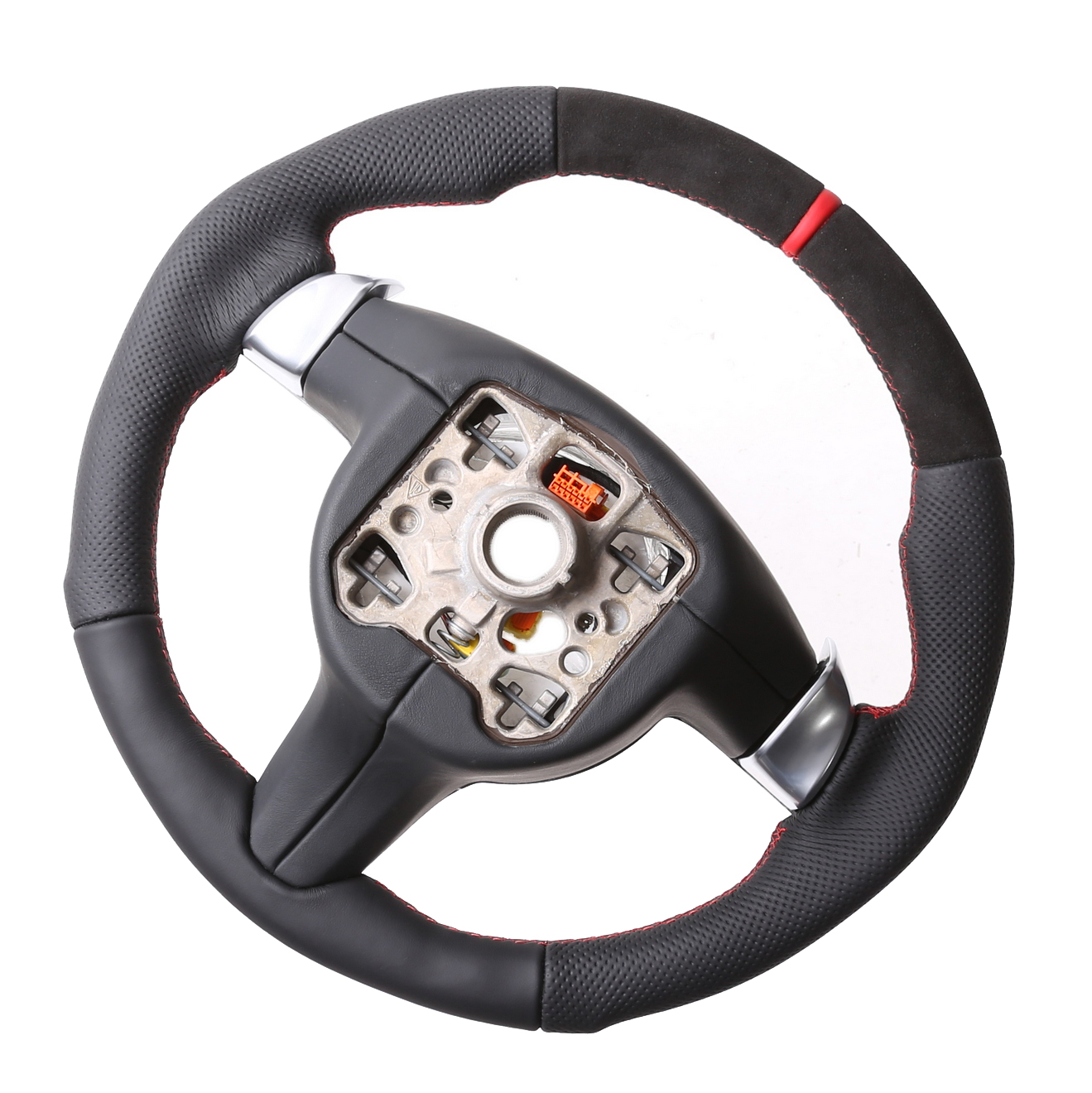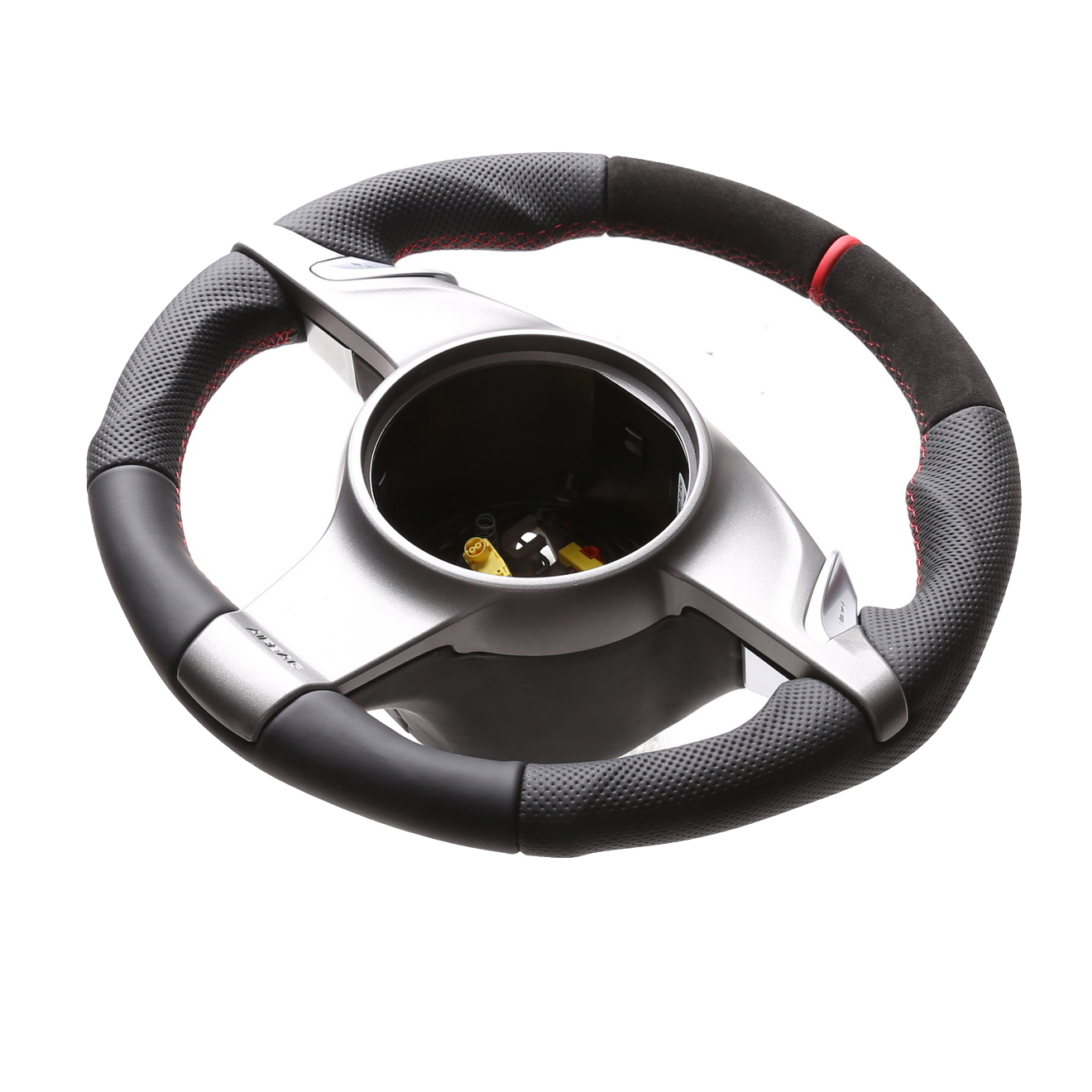 Originalfarbe schwarz, ein Kombibezug aus Alcantara und perforiertem Leder, 12 Uhr Markierung rot, Naht rot