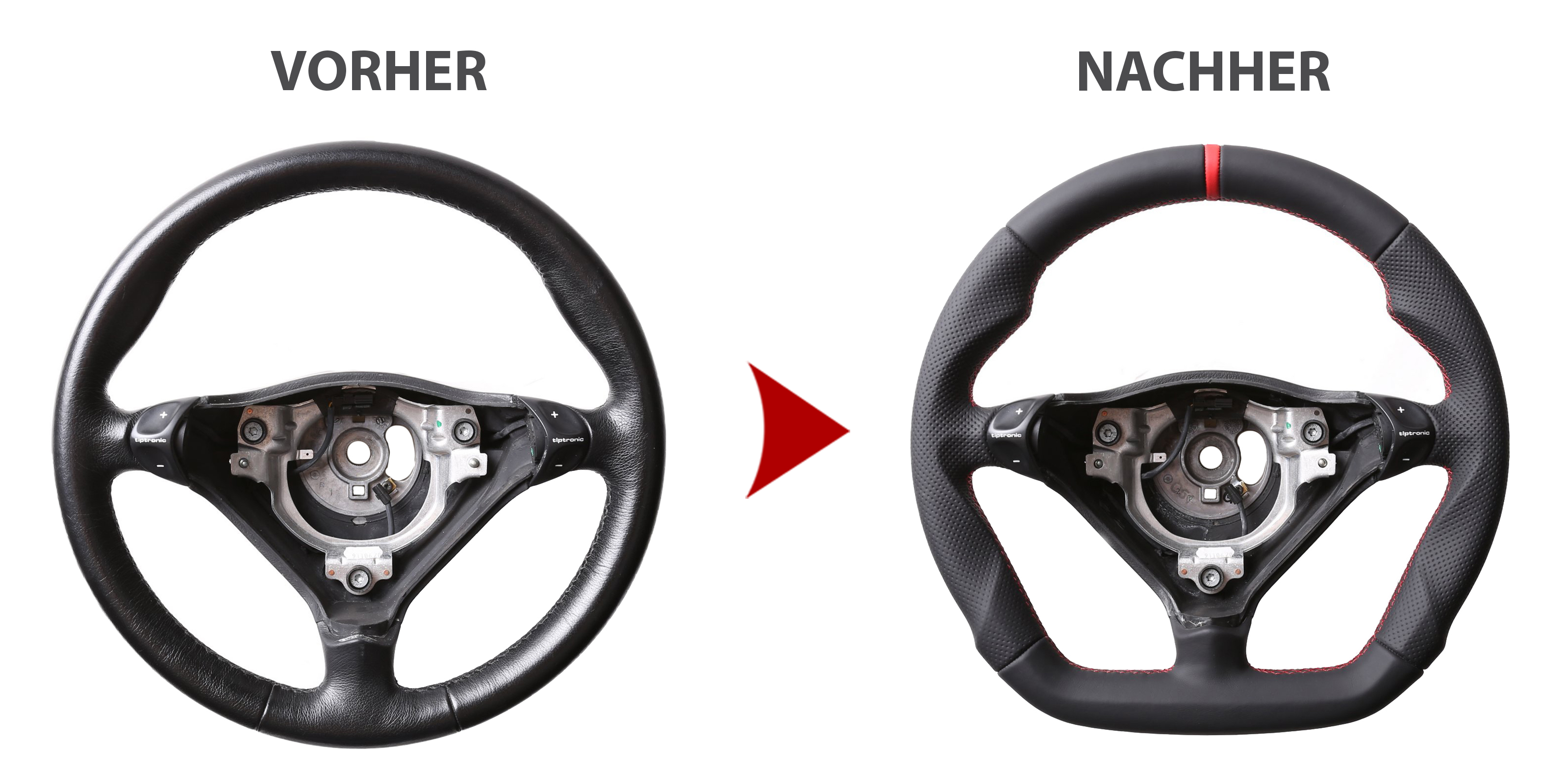 Abgeflachtes Tuninglenkrad mit Ergonomischen Griffen für maximale Kontrolle. Griffumfang dicker als das Original Lenkrad, mit Daumenauflagen