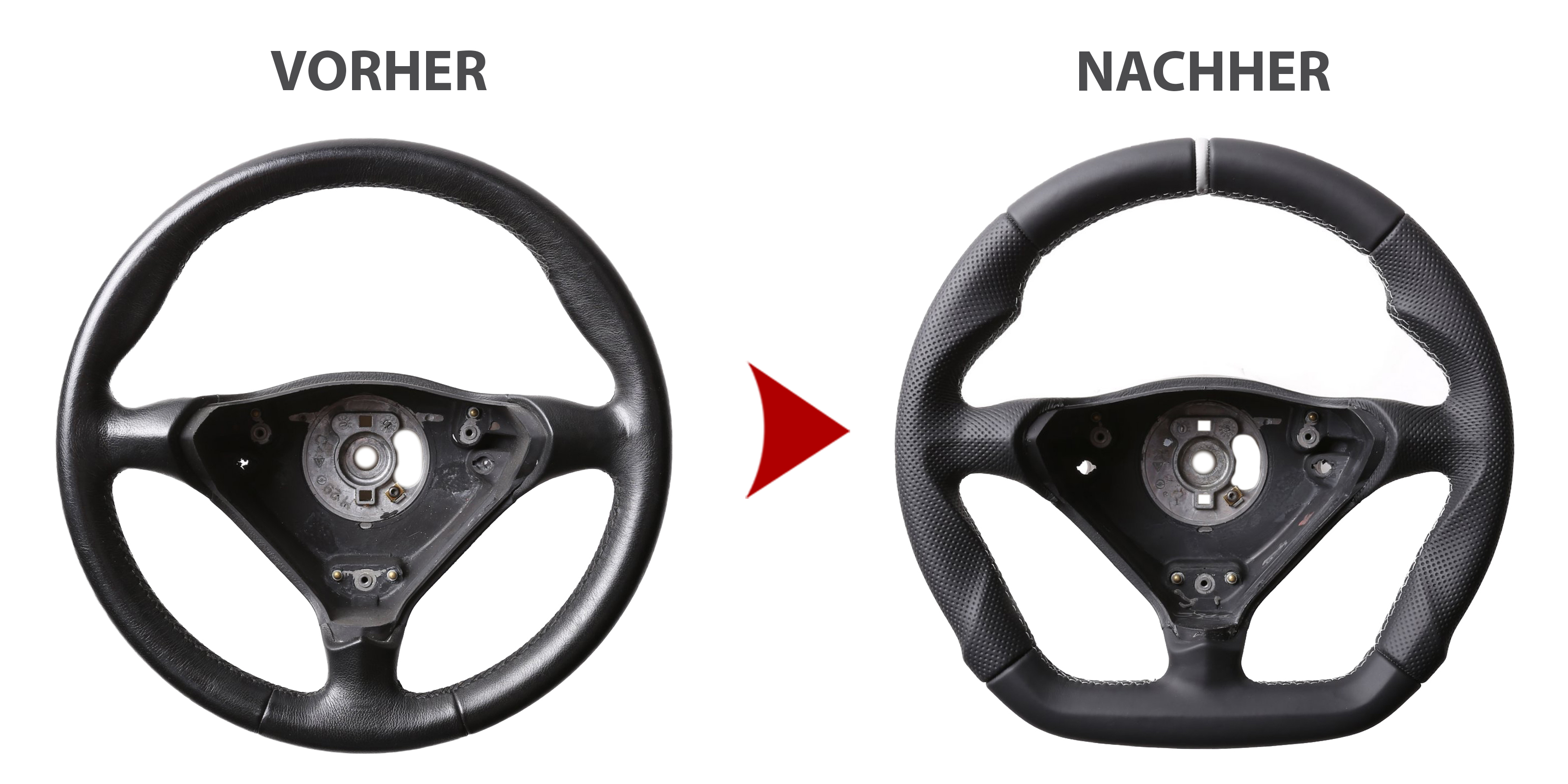 Abgeflachtes Tuninglenkrad mit Ergonomischen Griffen für maximale Kontrolle. Griffumfang dicker als das Original Lenkrad, mit Daumenauflagen