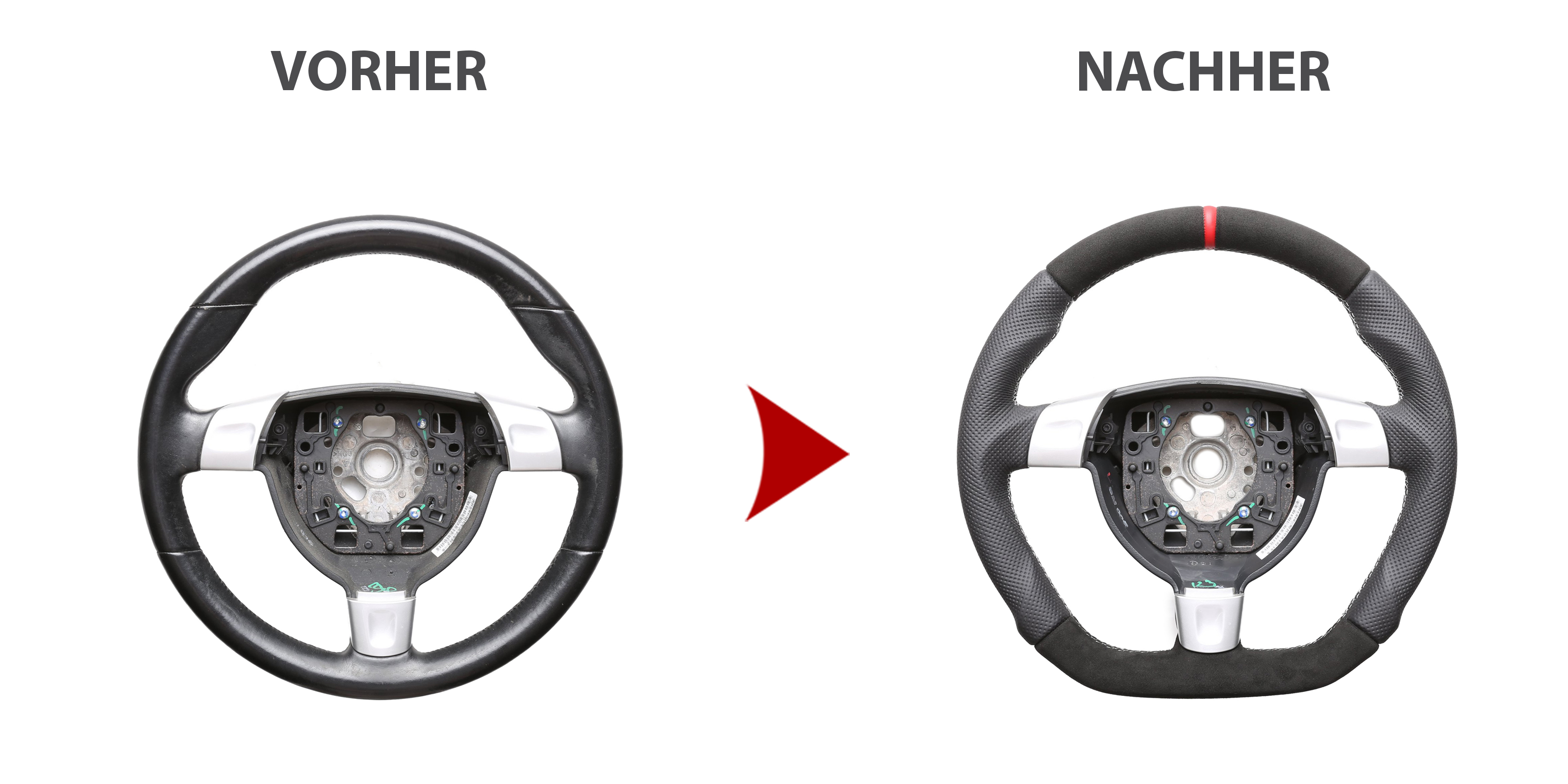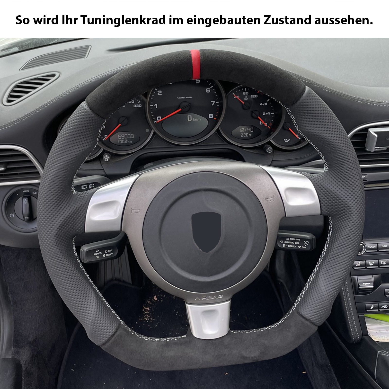 Porsche Lenkrad 911 997 Boxster Cayman 987 Abgeflacht Kombibezug Alcantara 12 Uhr Markierung rot