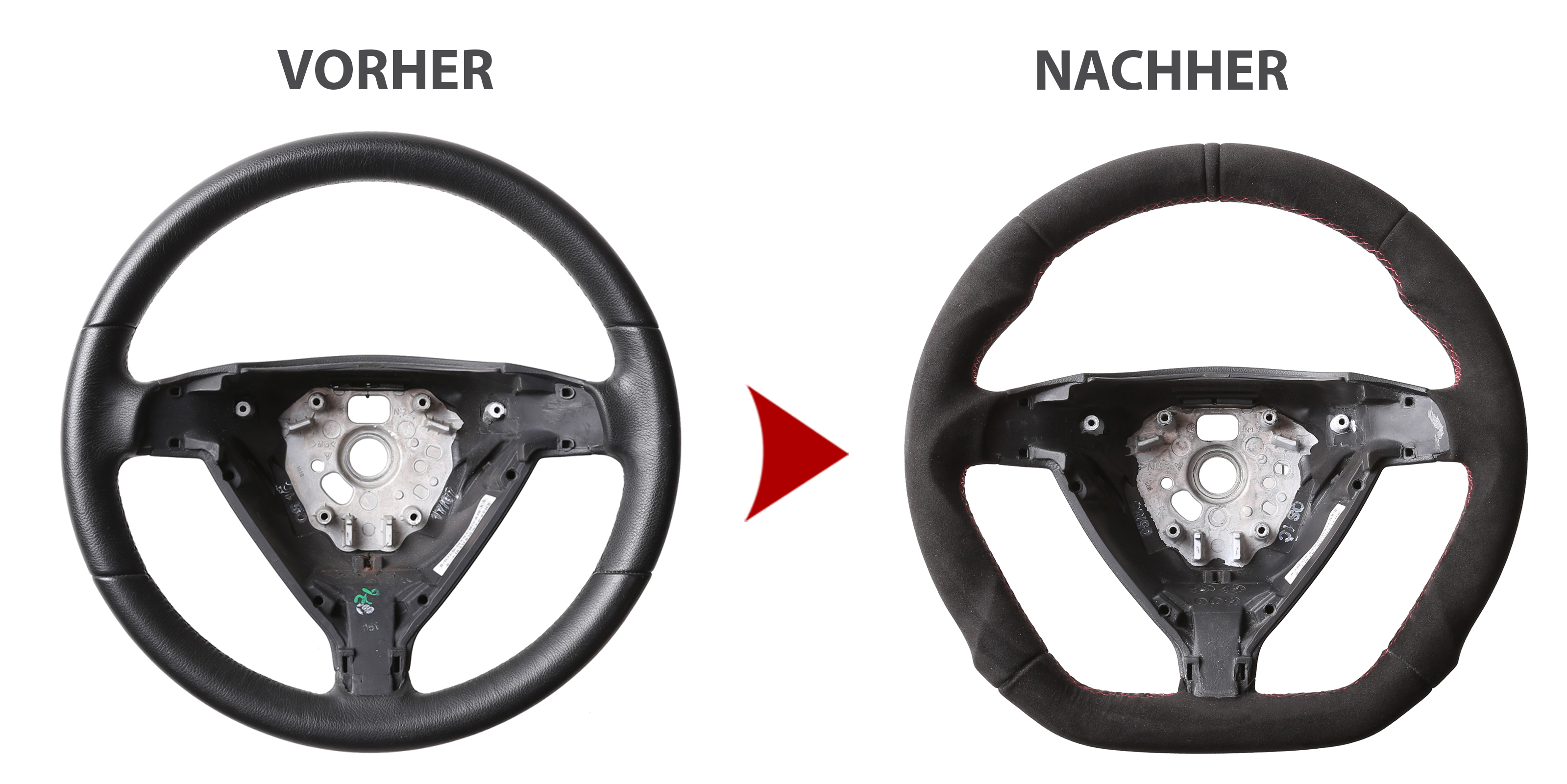 Abgeflachtes Tuninglenkrad mit Ergonomischen Griffen für maximale Kontrolle. Griffumfang dicker als das Original-Lenkrad.
