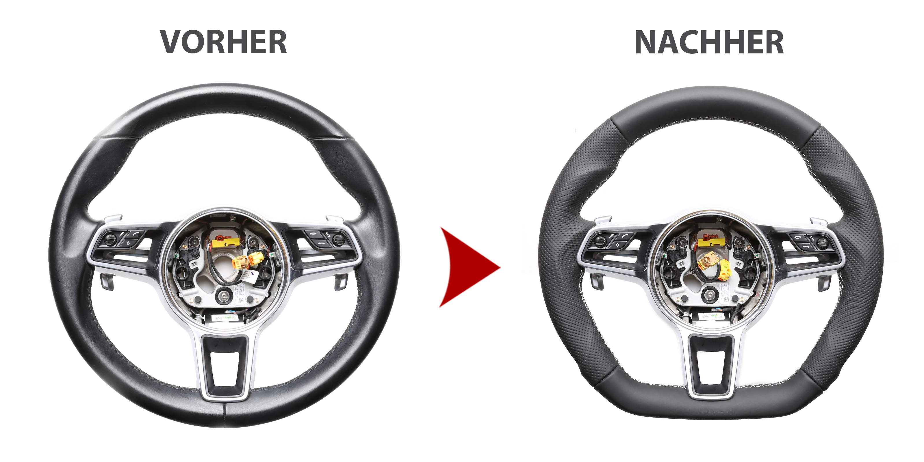 Der Austausch erfolgt ausschließlich gegen ein baugleiches Lenkradmodell. Alle Anbauteile wie Airbag, Multifunktionstasten, Blenden, Schaltwippen oder gar ein Spurhalteassistent übernehmen Sie problemlos von Ihrem Lenkrad. Diese sind nicht im Lieferumfang enthalten.