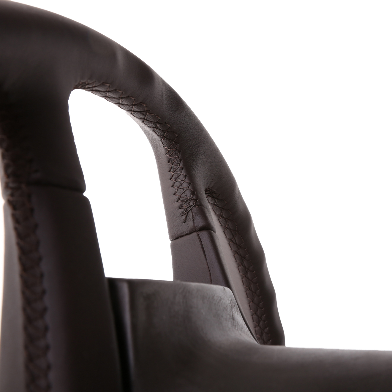 Wir verarbeiten ausschließlich Original Automobilleder, die Farbe nennt sich Soul und sieht eher Anthrazit aus als schwarz. Die moderne Autolederindustrie verwendet bei Porsche, Mercedes, BMW usw. keine tiefschwarzen Töne mehr wie früher. Das Leder wird heutzutage durch eine dünne Polyurethan Schicht (die besonders resistent gegen Handschweiß ist) und mattere Farben speziell geschützt. Auch eine Perforation am Leder (die bei uns im Hause durchgeführt wird) verändert nicht die Pflegeleichtigkeit.