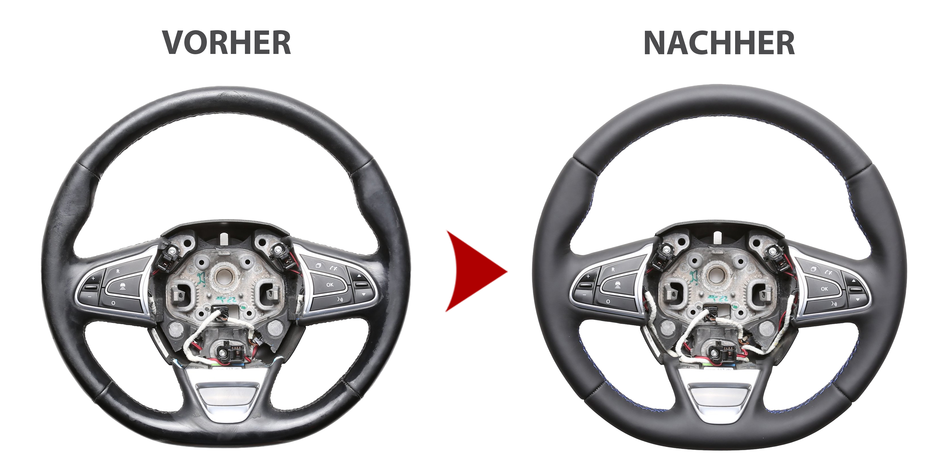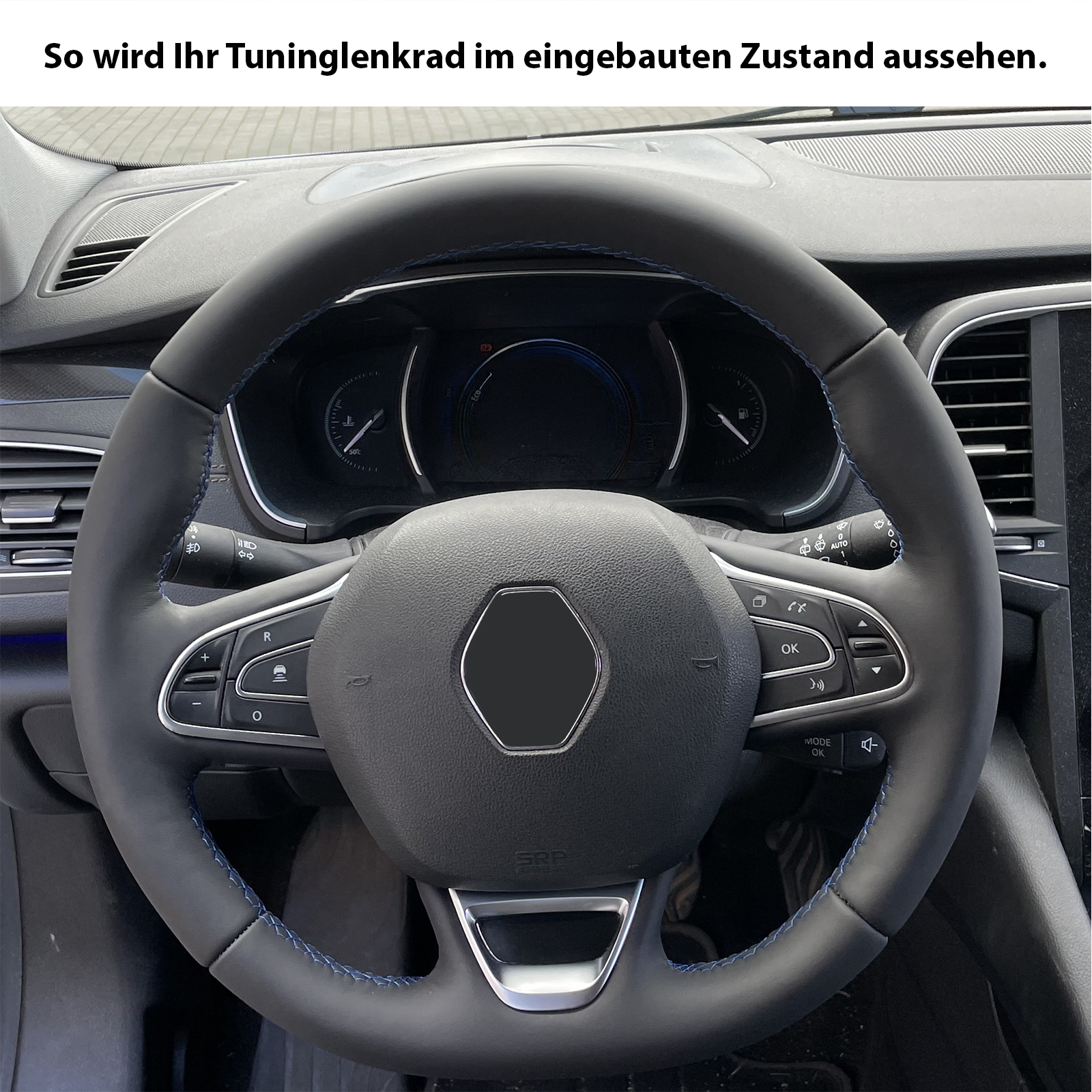 Produktinformationen "Renault Lenkrad Koleos Kadjar Megane Espace Scenic Talisman nur Nappa Naht blau"