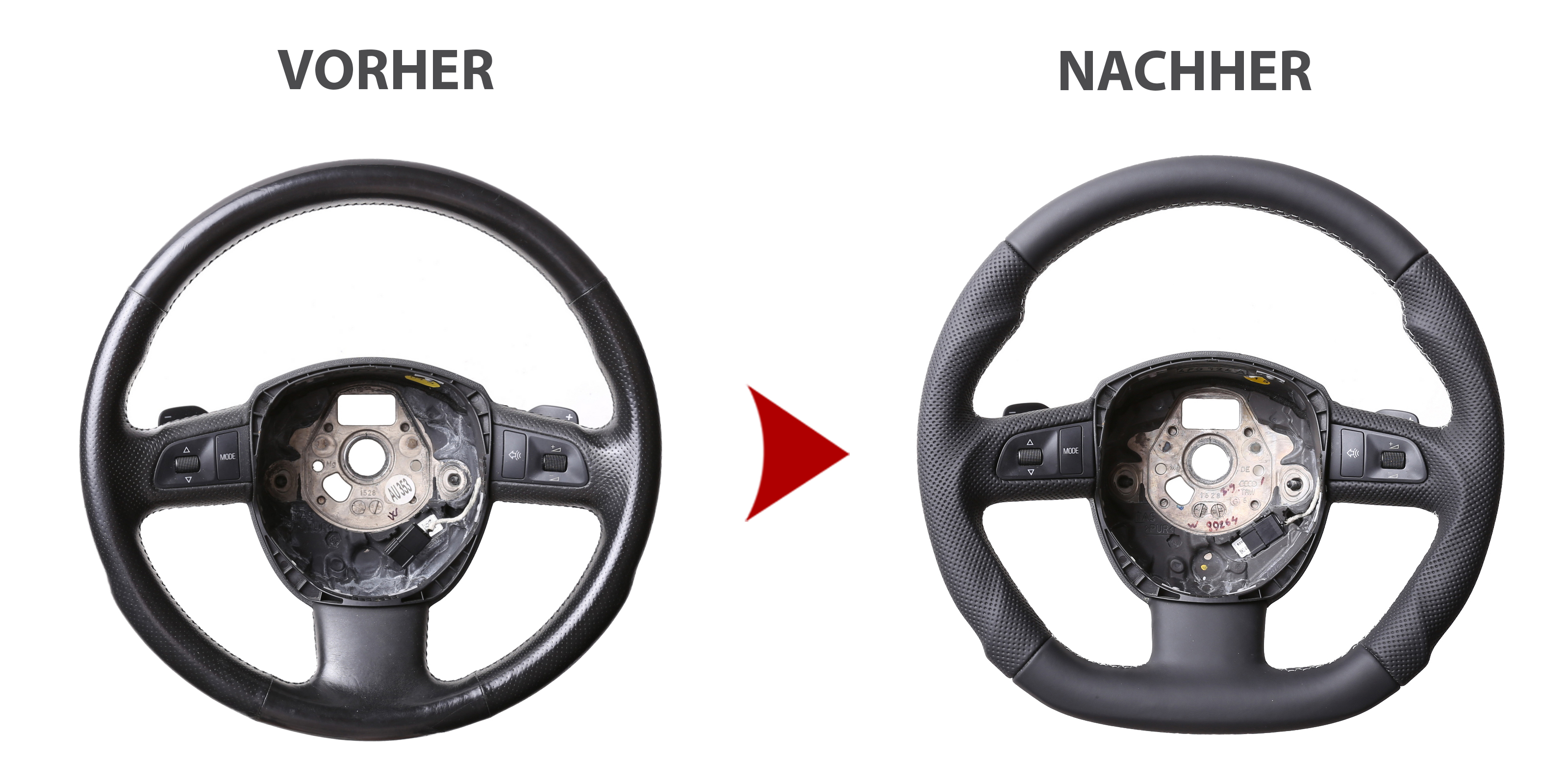 Der Austausch erfolgt ausschließlich gegen ein baugleiches Lenkradmodell. Alle Anbauteile wie Airbag, Multifunktionstasten, Blenden, Schaltwippen oder gar ein Spurhalteassistent übernehmen Sie problemlos von Ihrem Lenkrad. Diese sind nicht im Lieferumfang enthalten.