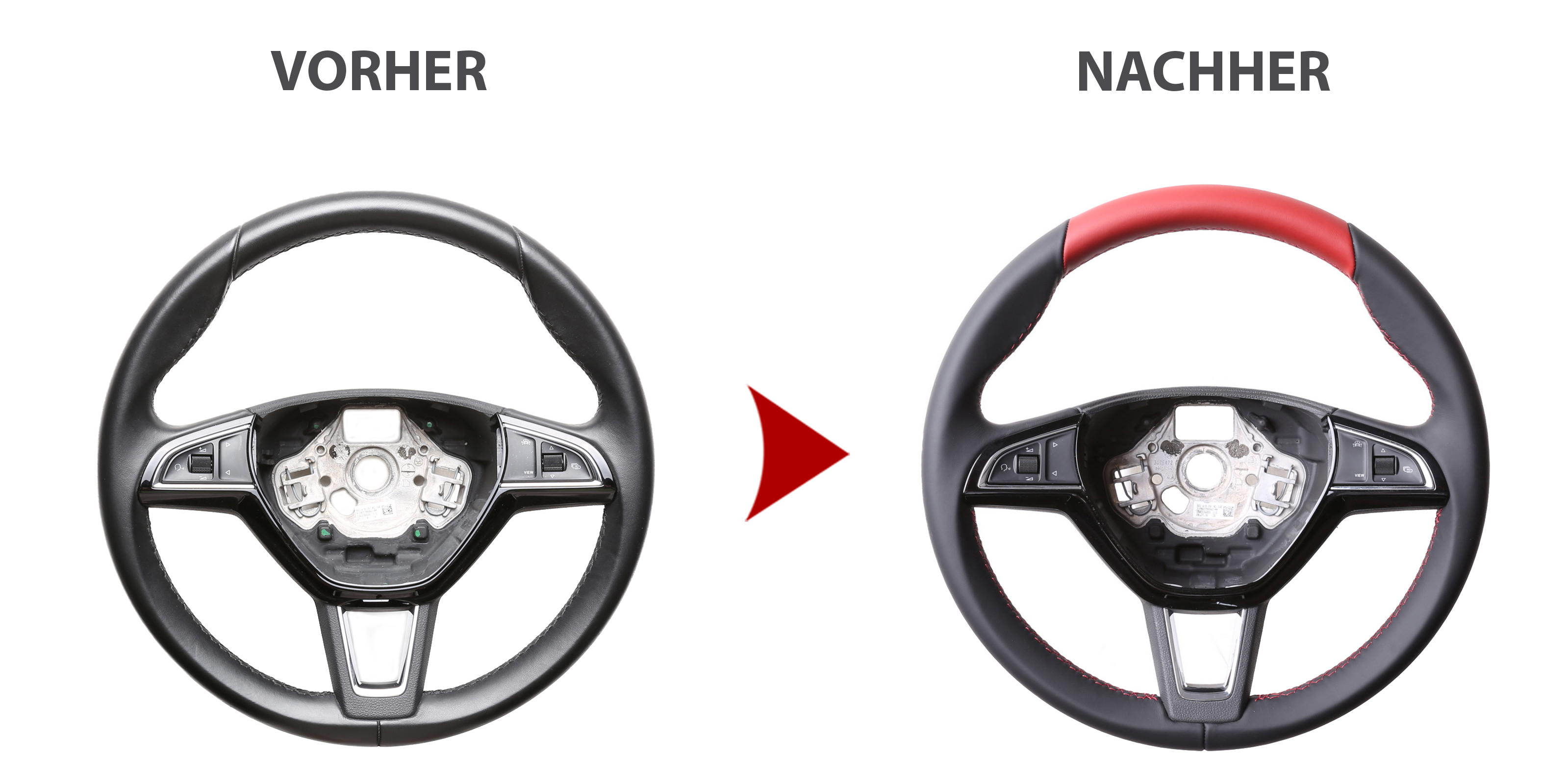 Produktinformationen "Skoda Lenkrad Fabia Kamiq Karoq Kodiaq Octavia Rapid Superb Bicolor Naht rot"