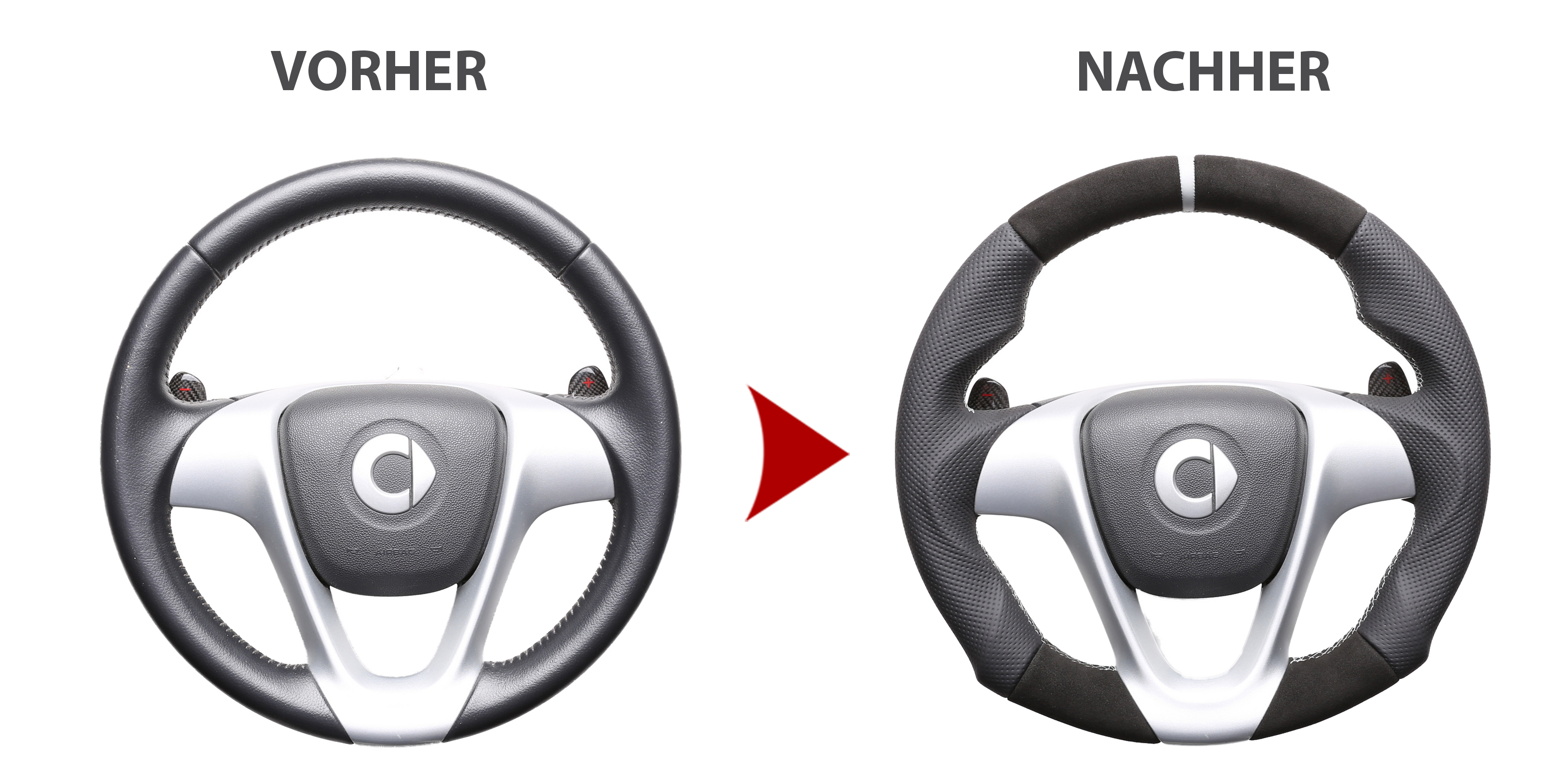 Smart Lenkrad Fortwo Turbo Sport Tuning Kombibezug Alcantara 12 Uhr Markierung silber Naht silber