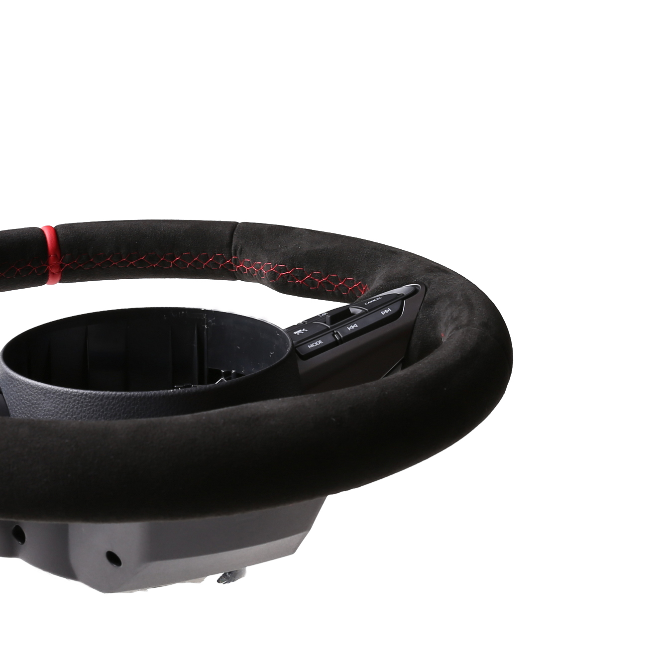 Originalfarbe schwarz, ein Bezug aus Alcantara, 12 Uhr Markierung rot, Naht rot