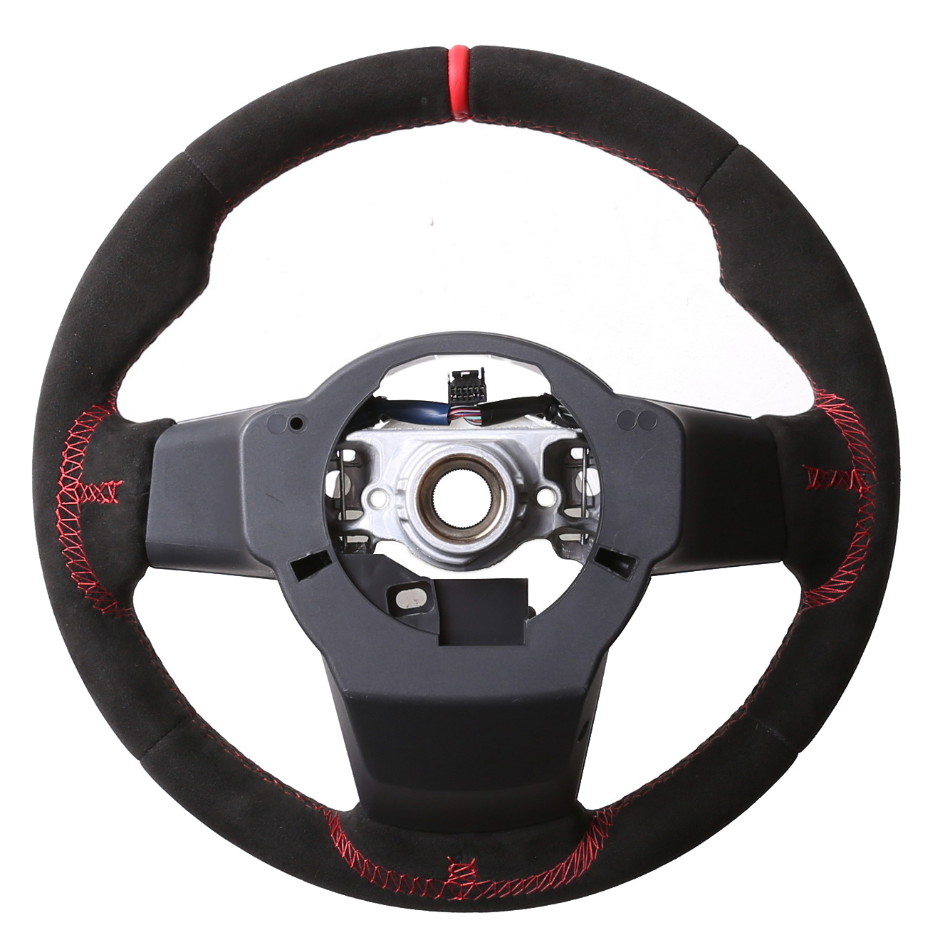 Produktinformationen "Toyota Lenkrad GR Yaris Daumenauflagen Alcantara 12 Uhr Markierung rot Naht rot"