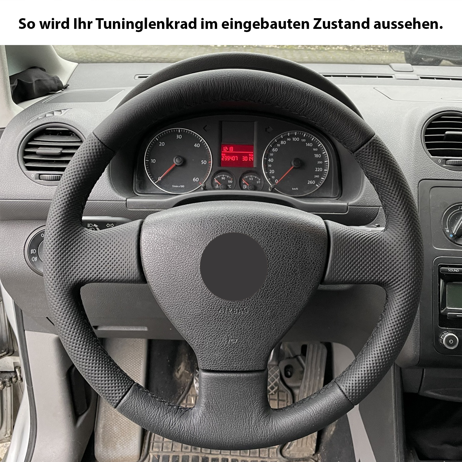 Produktinformationen "VW Lenkrad Golf 5 Fox Touran Polo9N Passat3C EOS Jetta Kombibezug genarbt Naht schwarz"