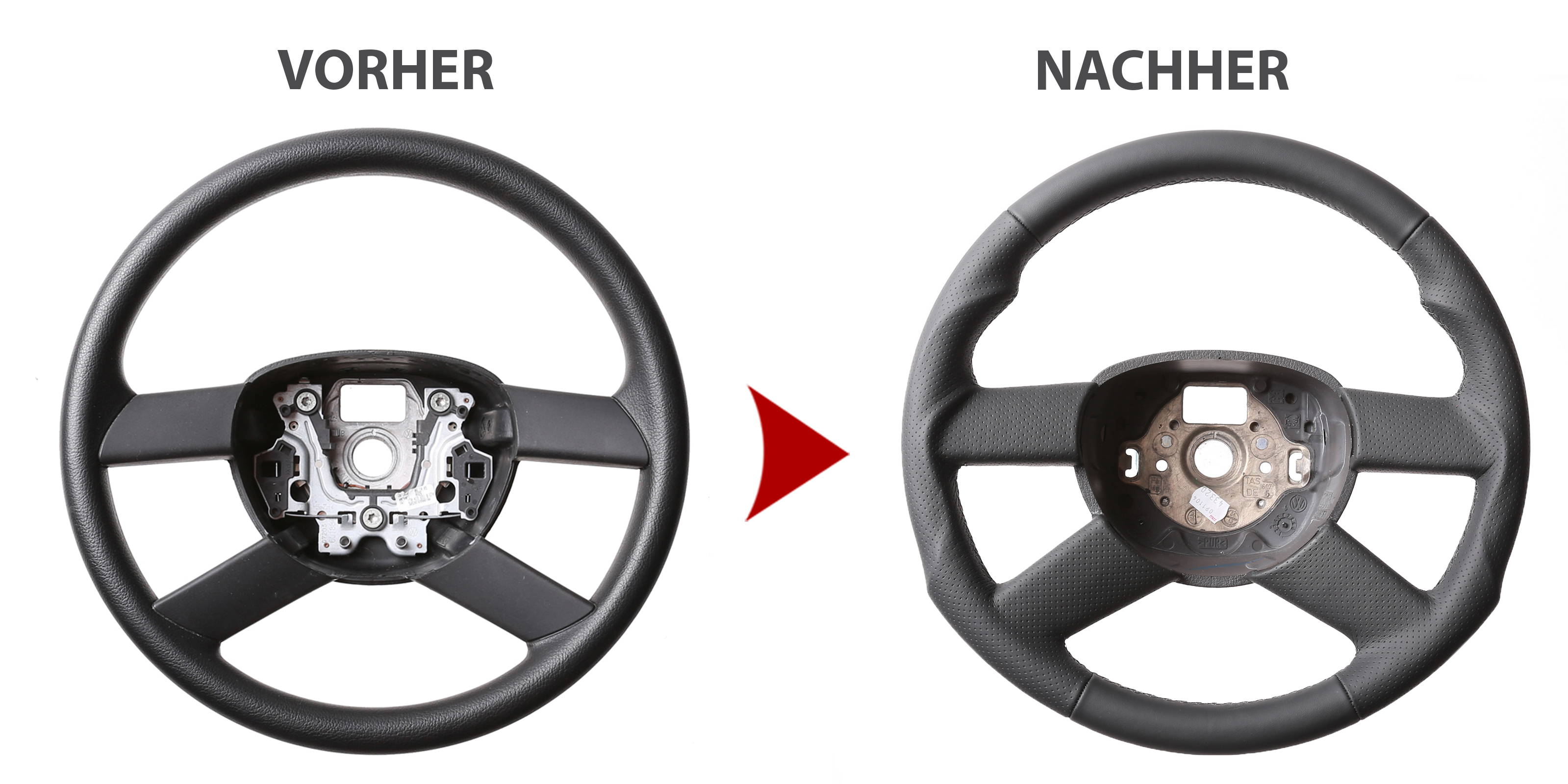 Des Weiteren bieten wir auch den Neubezug Ihres Lenkrades nach Ihren individuellen Vorstellungen bei uns vor Ort an. Sollte es Ihr Lenkradmodell ausnahmsweise nicht in unserem Sortiment geben, dann können wir Ihnen Ihr Lenkrad ausbauen, innerhalb von 4-5 Stunden den Wunschbezug anfertigen und anschließend können Sie wieder nach fachgerechtem Einbau durch uns ohne lange Versandwartezeiten und teure Werkstattbesuche mit Ihrem neu bezogenen Lederlenkrad nach Hause fahren!