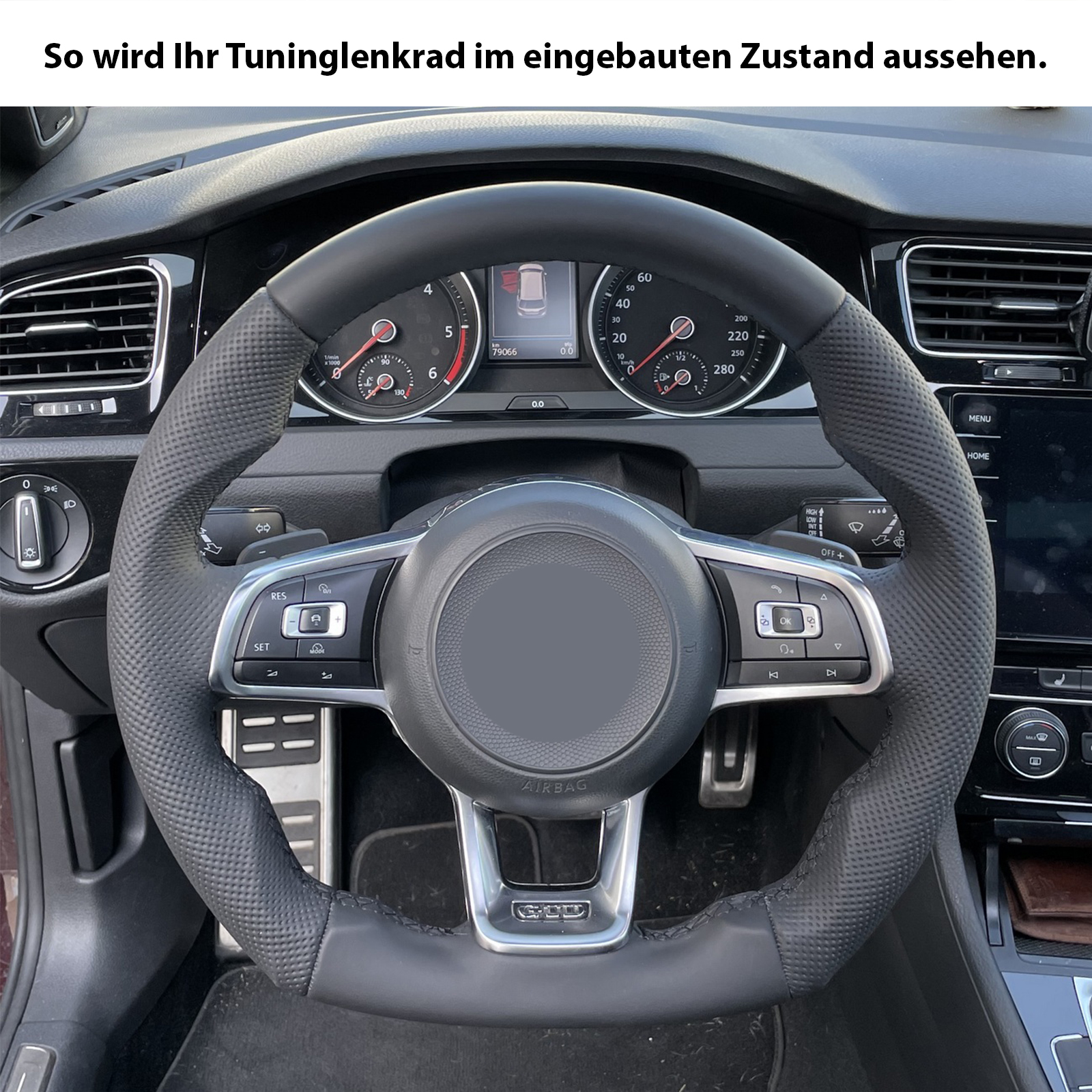 Produktinformationen "VW Lenkrad Golf 7 GTI Polo GTI GTD Polo Arteon Abgeflacht NEU Kombibezug Naht schwarz"