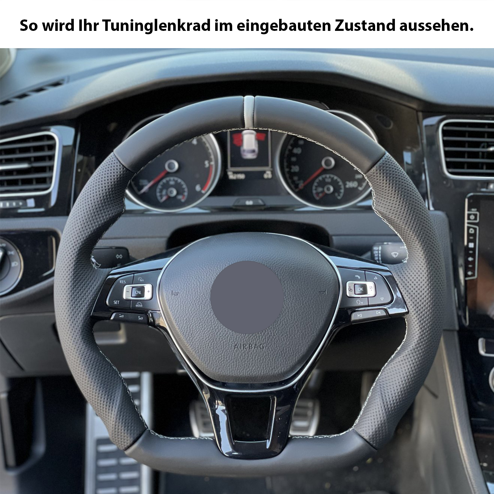 Produktinformationen "VW Lenkrad Golf 7 Passat B8 T6 Amarok Arteon Abgeflacht 12 Uhr Markierung silber Kombibezug"