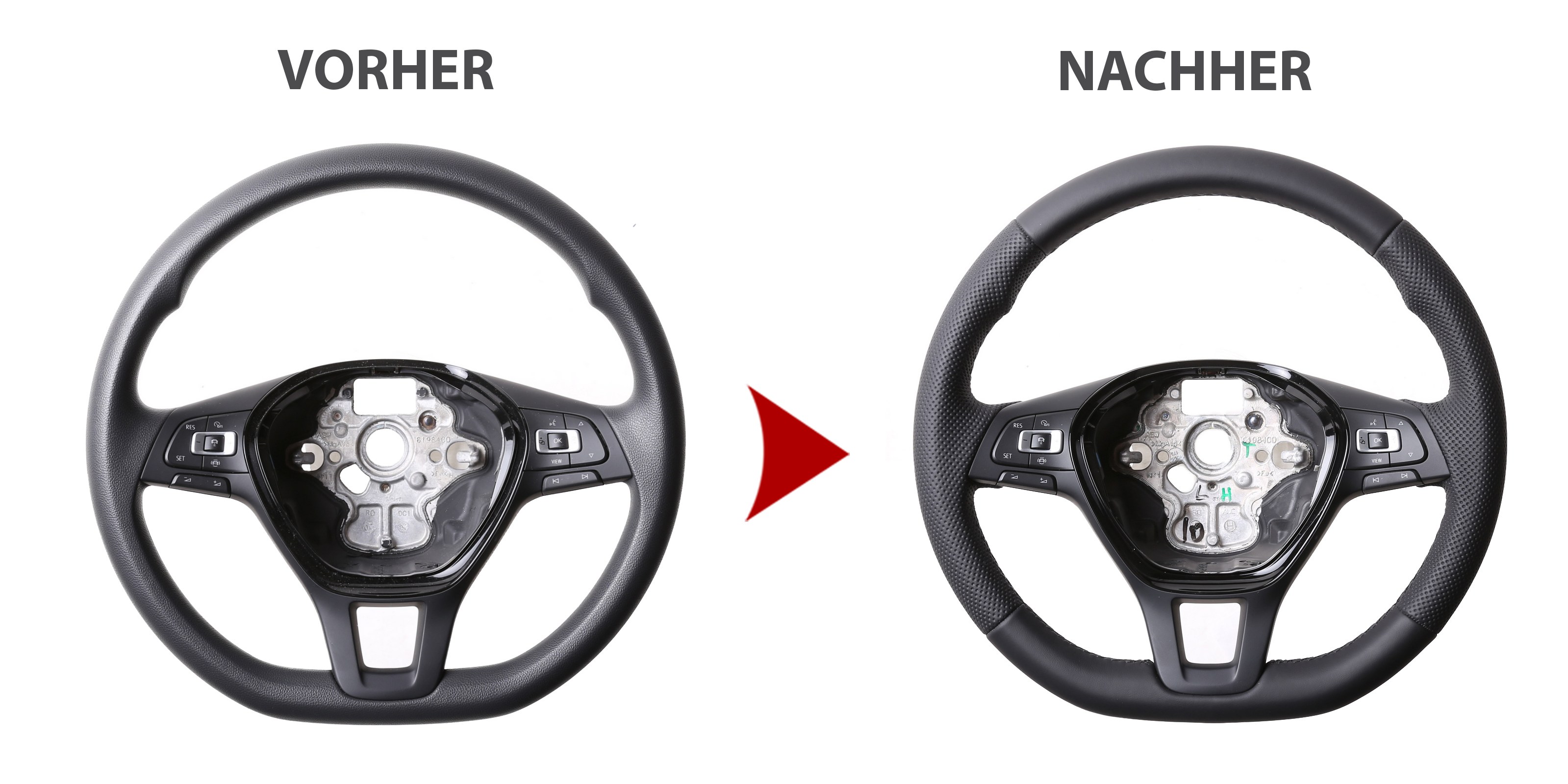 Der Austausch erfolgt ausschließlich gegen ein baugleiches Lenkradmodell. Alle Anbauteile wie Airbag, Multifunktionstasten, Blenden, Schaltwippen oder gar ein Spurhalteassistent übernehmen Sie problemlos von Ihrem Lenkrad. Diese sind nicht im Lieferumfang enthalten