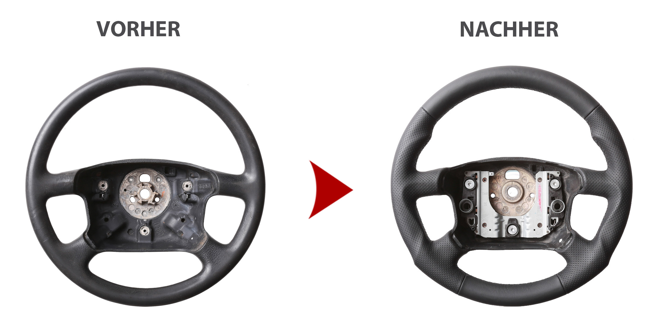 Ob Sie einen einfachen Neu Bezug des Lenkradmodells wünschen oder das Tuning Design oder aber ein abgeflachtes Design, der Preis ist bei allen Varianten gleich. Der Grund: das hohe Alter der Fahrzeuge und dessen Lenkräder. Diese sind sehr abgegriffen und weisen zum größten Teils starke Defekte am Lenkradkranz auf. Dies bedeutet für uns, den gleichen Arbeits,- und Materialaufwand für alles Designs.