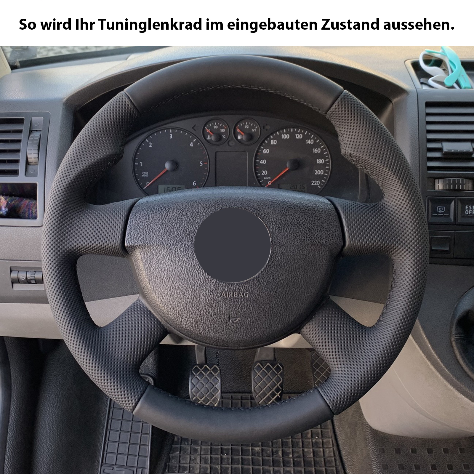 Produktinformationen "VW Lenkrad T5 Passat 3C Daumenauflagen Kombibezug Naht schwarz"